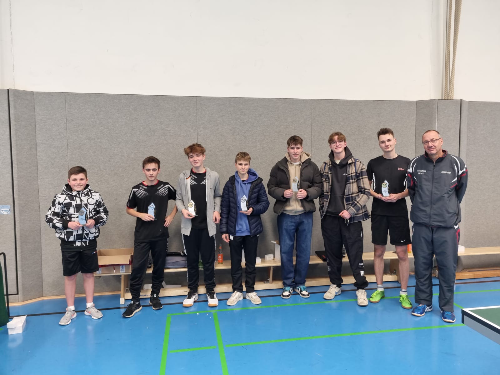 Am 16.11.2021 fand in der Sporthalle 5 die diesjährige Jugendvereinsmeisterschaft statt. Es fanden sich 7 Jugendliche des Vereins ein um den Besten aus ihren Reihen zu küren. Gespielt wurde in zwei Leistungsgruppen A und B. In der A Gruppe waren hierbei 4 Spieler während in der B Gruppe nur 3 Spieler antraten. Im „Jeder gegen Jeden“ Turnier in den jeweiligen Gruppen ergab das Spielergebnis folgende Platzierungen:
